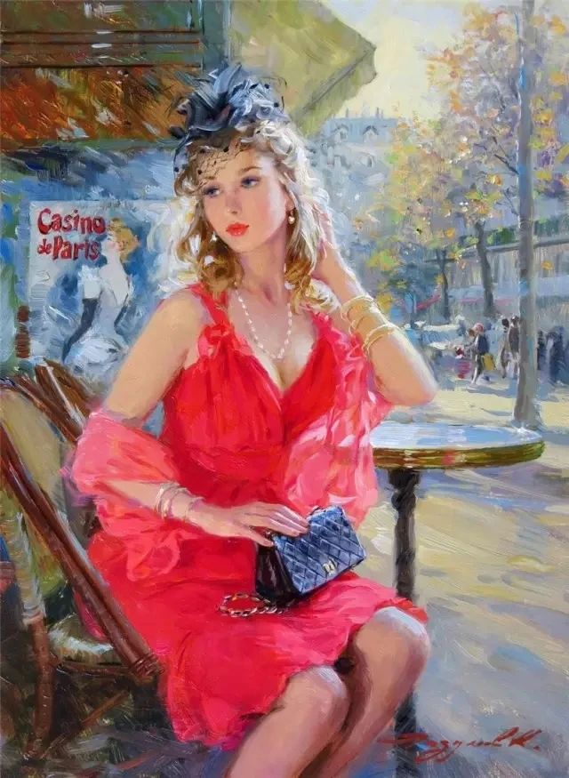 那些风格各异的作品给他后来的艺术创作之路打下了很多好的基础康斯坦丁精通现实主义和印象主义相结合的绘画技巧他常习惯以现实主义的手法去表现人物但在画面的背景乃至整体的色调上他又会以印象主义的手法去刻画最终便形成了,主体人物写实,背景内容较为虚化的视觉效果。