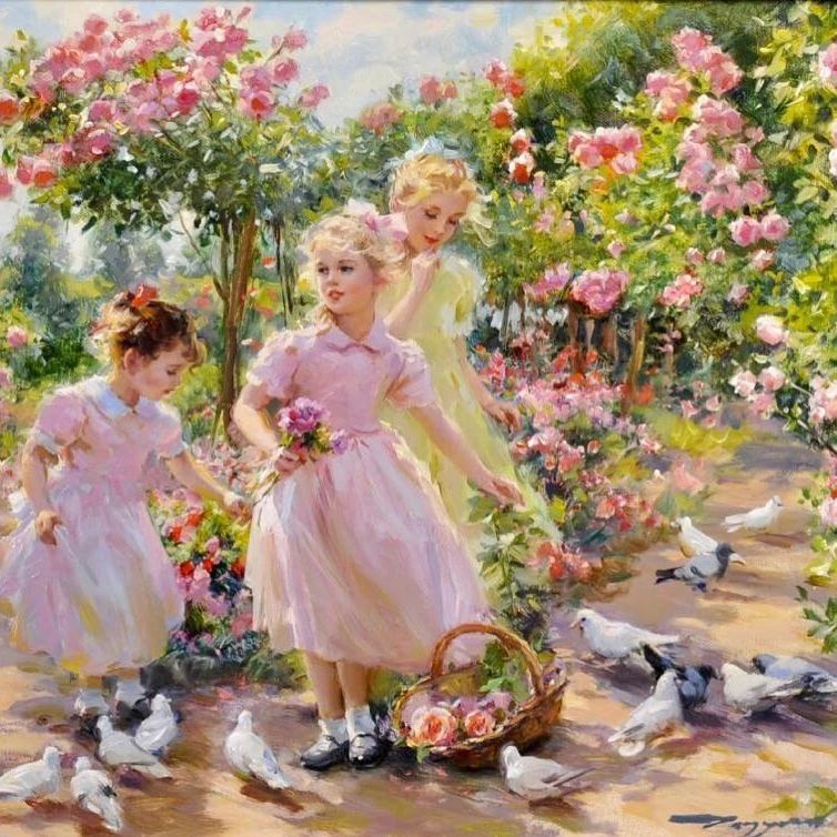 康斯坦丁的一系列作品中无论是刻画哪个年龄段的人物画面都不曾离开过暖融融的清新色调在这一幅幅的创作之中使人流连忘返。