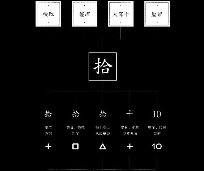 创意点选用/元素抽取:从“拾”这个字的不同含义上经由这些意思整理归纳,大体创意元素如下: