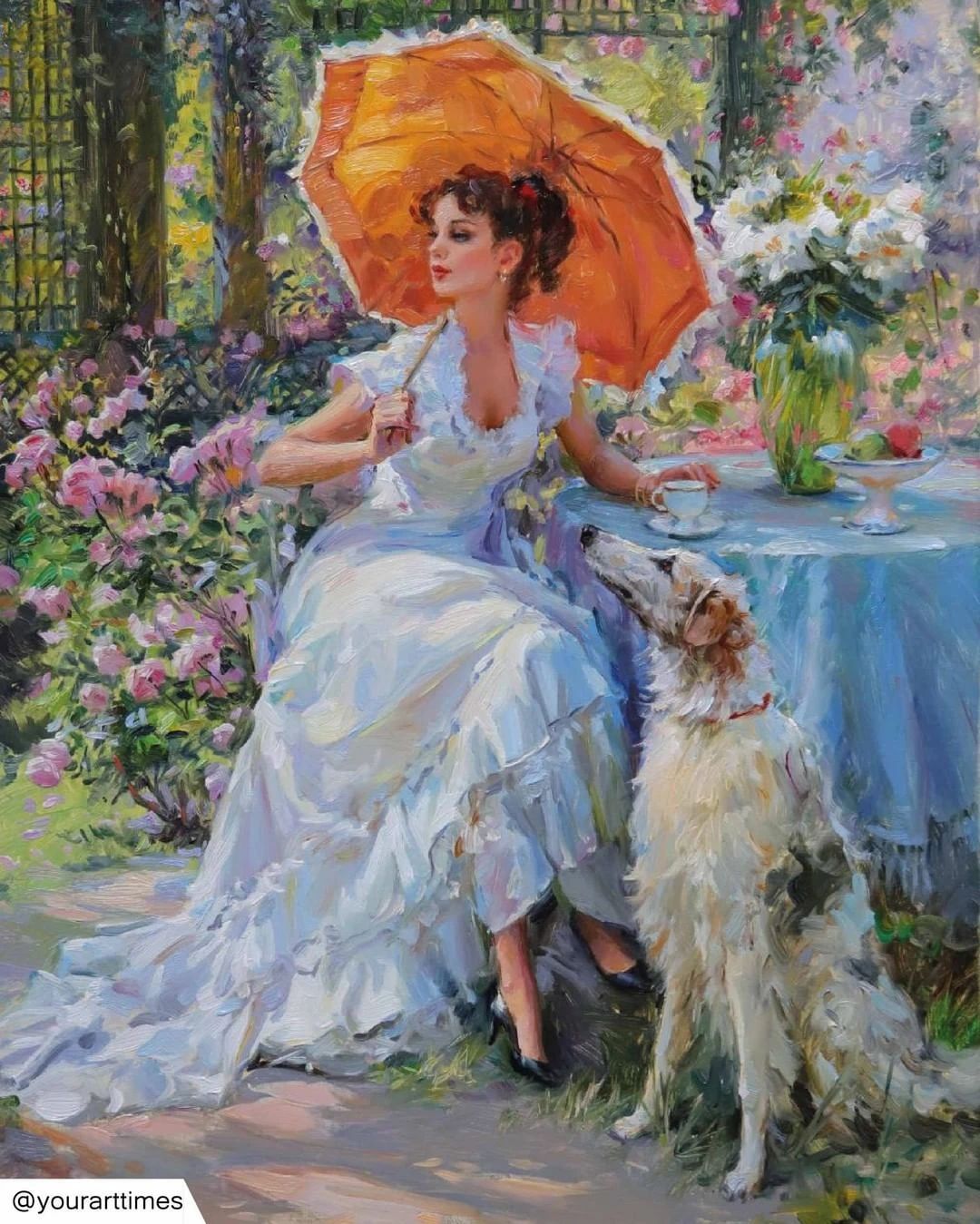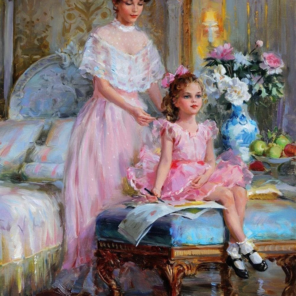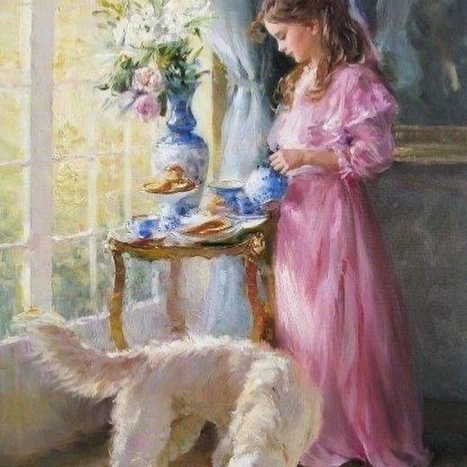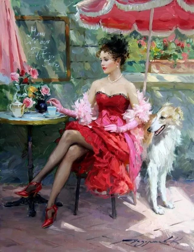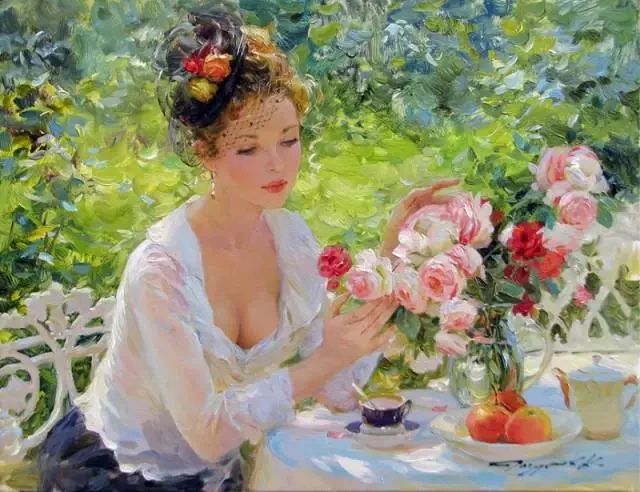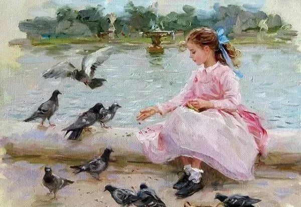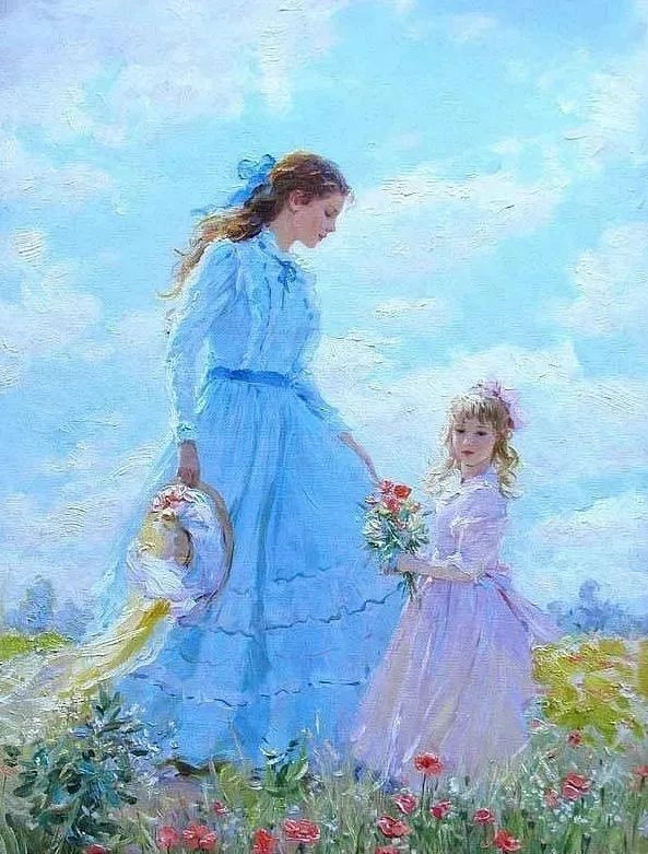 康斯坦丁的一系列作品中无论是刻画哪个年龄段的人物画面都不曾离开过暖融融的清新色调在这一幅幅的创作之中使人流连忘返。