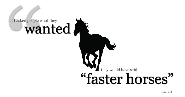 如果不连续追问下去,我们很容易被表象迷惑,永远得到的都是“一匹更快的马”,而没想到给用户造出汽车。