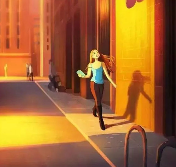 自信快乐的走在路上