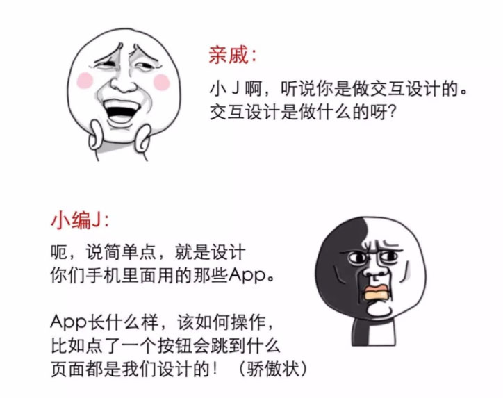 我们不求把业界中“UX、UI、交互、视觉…”这些模糊的概念解释清楚,只求让亲戚们了解我们“高大上”的工作内容。让他们不要再向我们提出P正脸图、做视频、修电脑、冲点卡等等各种荒谬的需求。