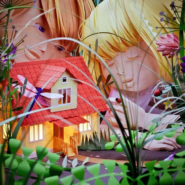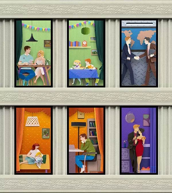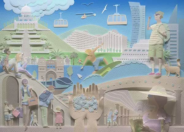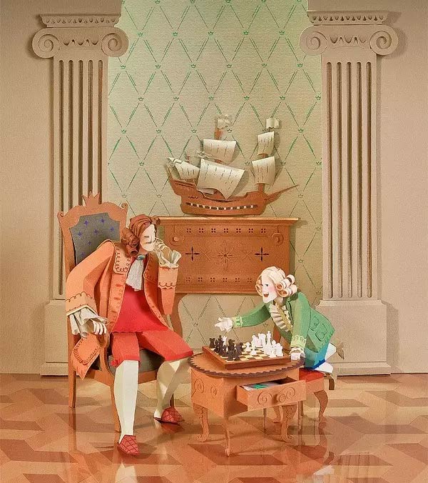 他们用一把剪刀,一组漂亮纸张