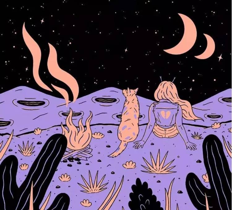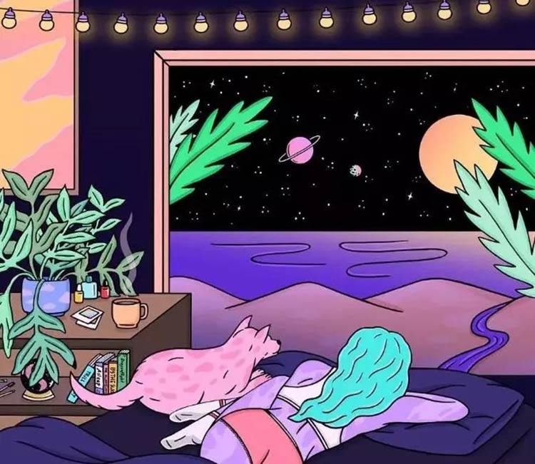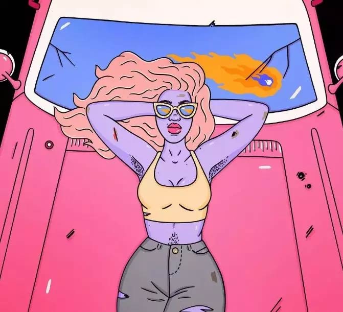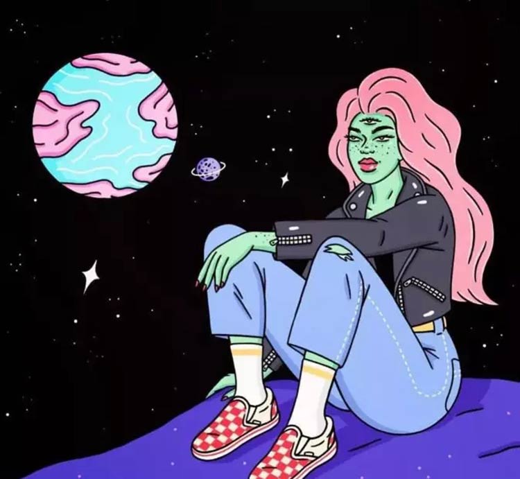我喜欢自己画女人——探索太空,享用汉堡,滑板,和外星猫一起看星空,晚上开车等等。我小时候最喜欢的幻想小说总是关于女孩子离家出走,变成巫师,骑龙,执行太空任务……