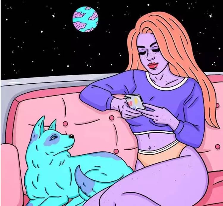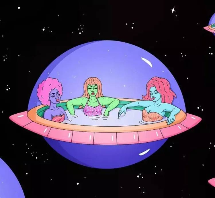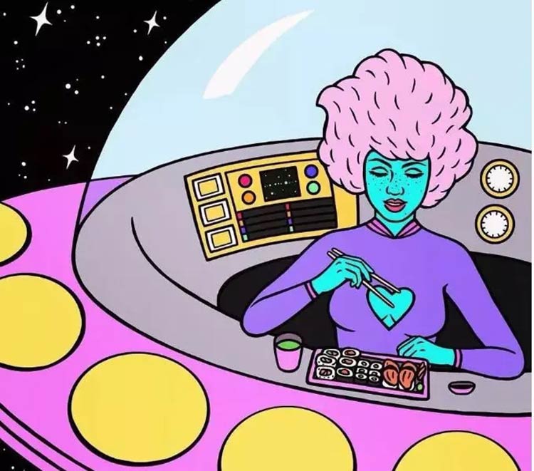 我喜欢选择独立的女孩故事,在我的画中,我喜欢把孤独表示为美丽、有趣和有趣的东西。我个人很幸福,但是我也喜欢独自一人,并且总是很感激,我喜欢绘画出和庆祝这些时刻。幸运的是,我的朋友们都认识到,女性是科幻文化的重要组成部分。我很高兴,很荣幸能贡献自己的力量。