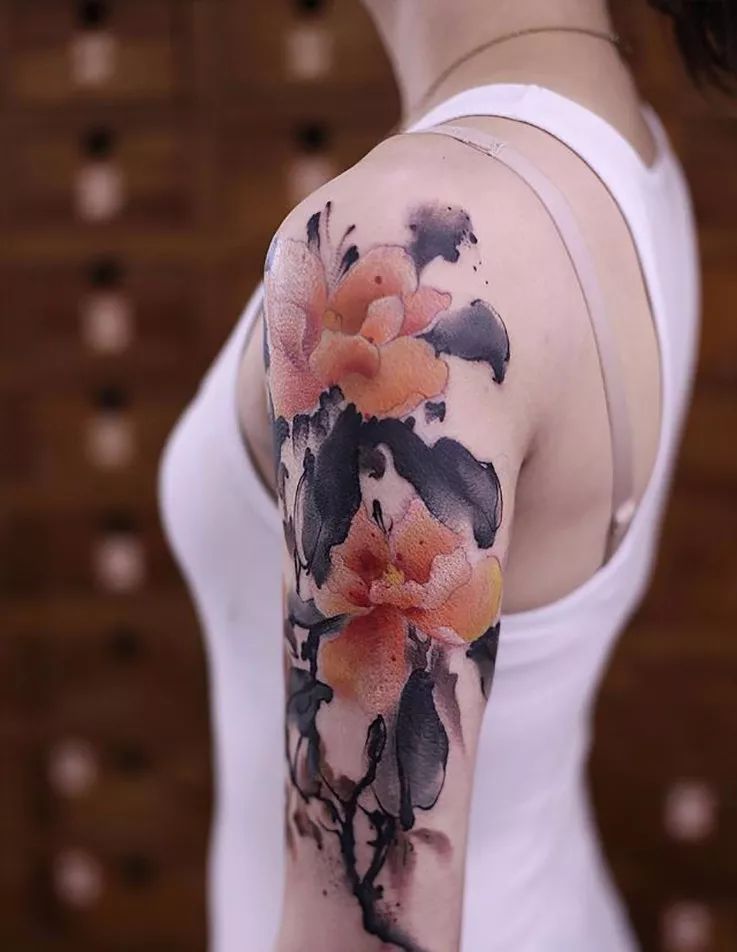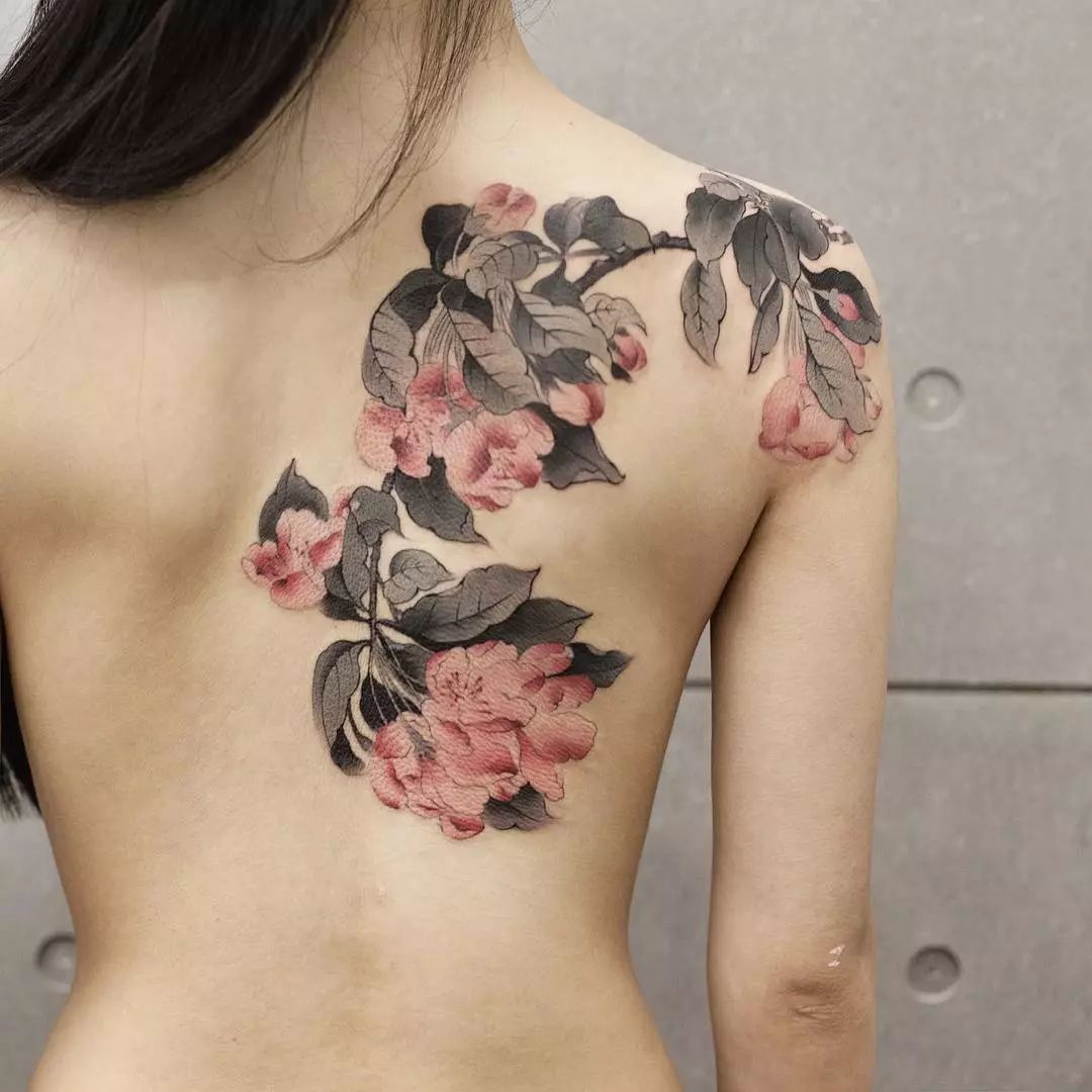 这些文身,全都是北京文身师陈洁的作品,她从传统的水墨画和诗歌中吸取灵感,
