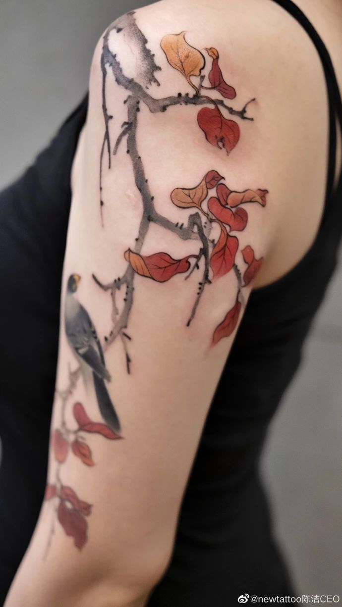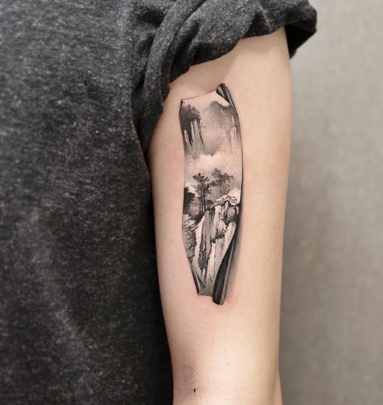 以上的文身,看上去是不是很像一首诗,又像是一幅画,感觉充满了诗意,令人沉思和遐想。