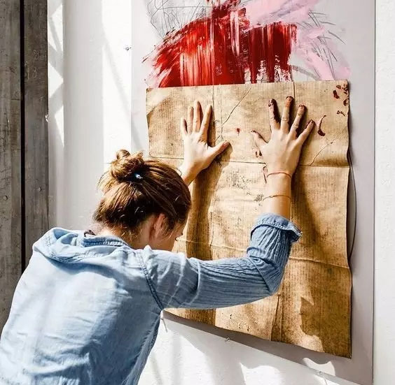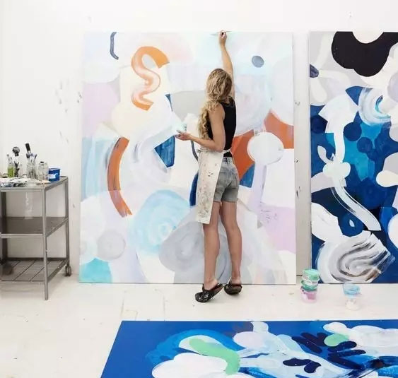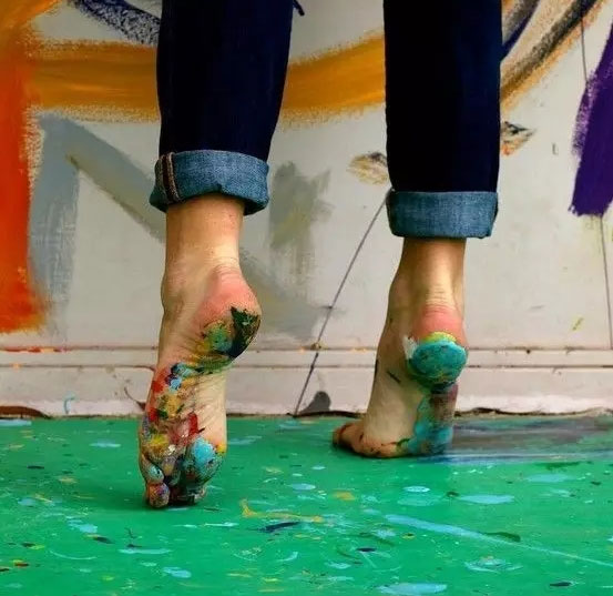 看画板眼神,拿画笔的动作