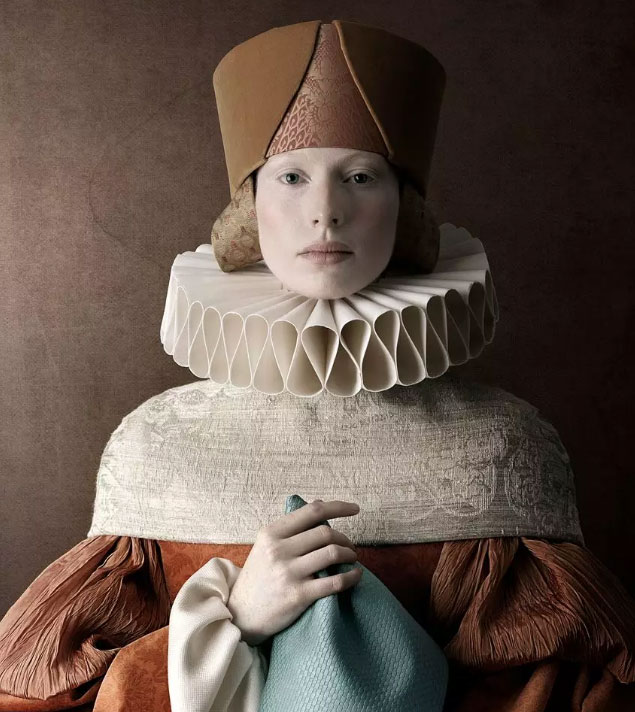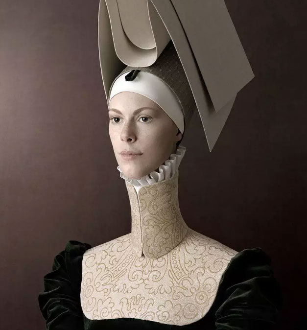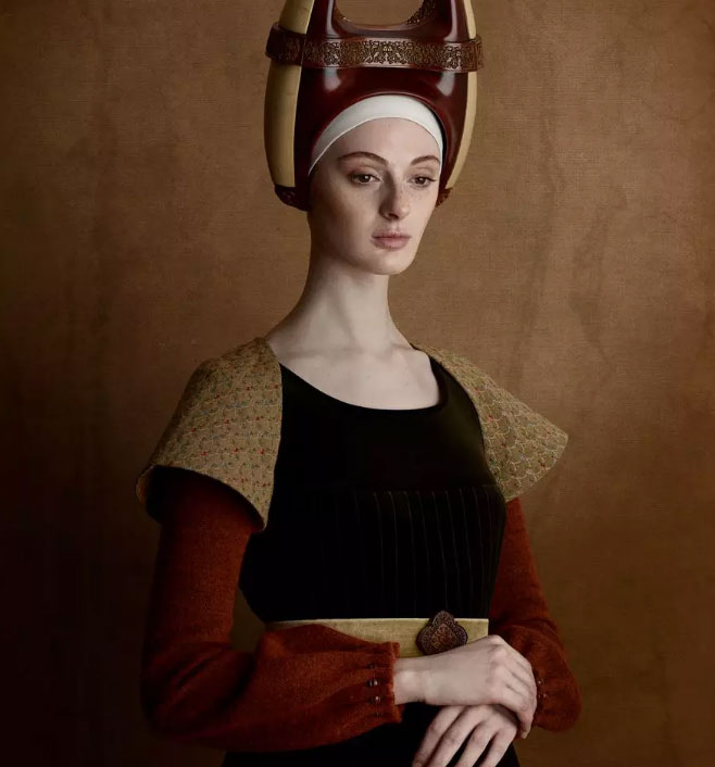摄影师Christian Tagliavini从意大利文艺复兴时期的绘画作品中得到灵感,同时沿袭了一些如立体派等绘画的光影、色彩及平面构成,并结合当代摄影的后期处理手法,创作出让人耳目一新的肖像作品。浓郁的古典气息和精致优雅的服装细节,令观者仿佛穿越时空,回到了文艺复兴时代。