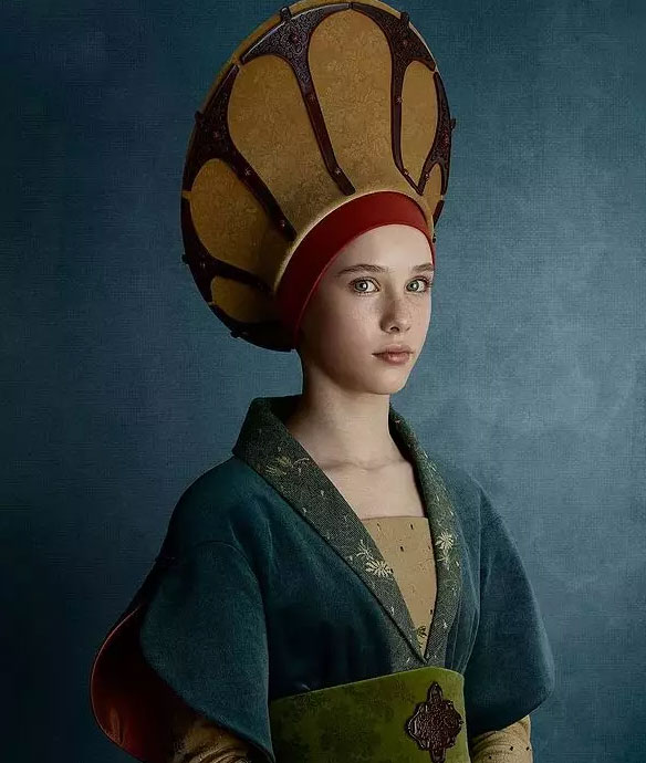 Tagliavini采用传统的“照相版”方法,严格遵循了时代特征和传统习惯,使用纸板以及特定的锦缎和天鹅绒亲手制作了精美的服饰,将现实中的人物瞬间带入豪华的佛罗伦萨画派中。