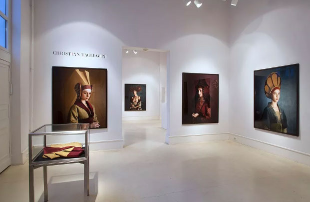 Tagliavini一直着迷于Mise-en scène(场面调度)摄影和文艺复兴时期的肖像画。他从文艺复兴时期意大利的绘画作品上抽取表现形式,同时沿袭了如立体派等绘画的特点,创作出具有浓郁古典气息的人物肖像,散发着一种属于15、16世纪宫廷文化的尊严、高贵和镇静感。