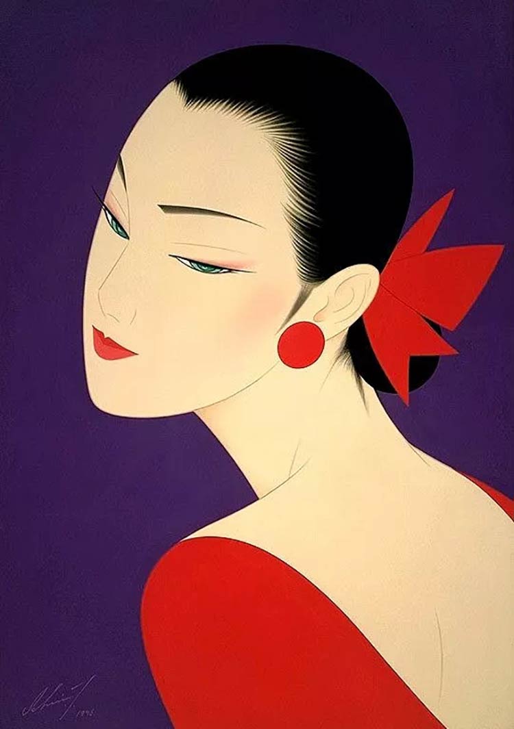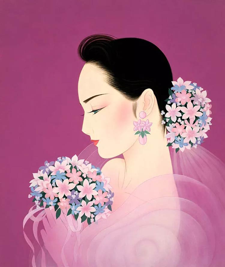 鶴田一郎的作品非常有魅力,他笔下的女性不仅美丽、气质高贵、艳丽,而且还透露着神秘感,细微之处给人留下难忘的印象。