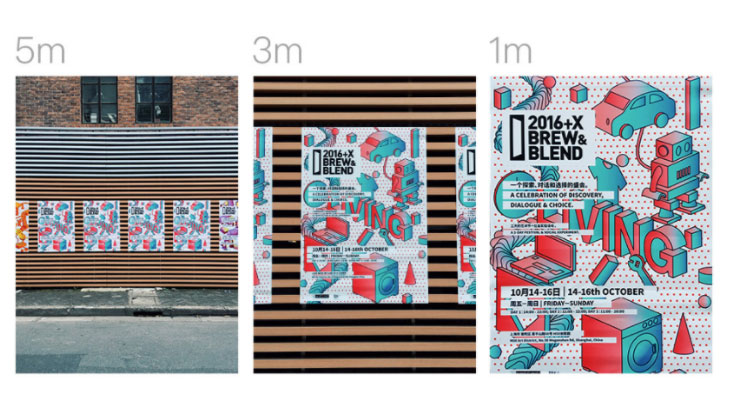 前面谈了如何组织信息,那如何使主要信息更为有重点?首先可以通过拉开大小比例,拿一张活动海报来举例。5米处能看到什么?海报的大图案渲染气氛的整体感受;3米处能看到什么?活动主标题;1米近距离又能发现什么?具体信息和时间等。拉开主次信息的尺寸大小对比,从空间距离上,使得观众接受信息传达有了先后。观众近距离阅读,信息有效传达的顺序同理适用。