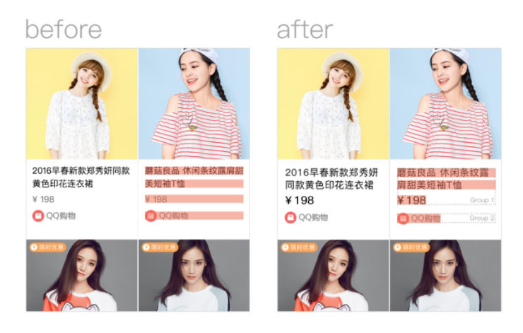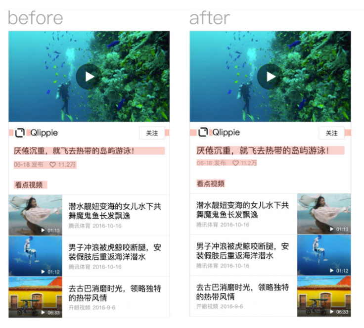 看似没有什么差错的信息布局(左图),为什么始终差了一些什么?由于细节之处并非理解信息主次。最初设计稿追求绝对的均分,导致信息较散,没有“组”的紧凑感。
