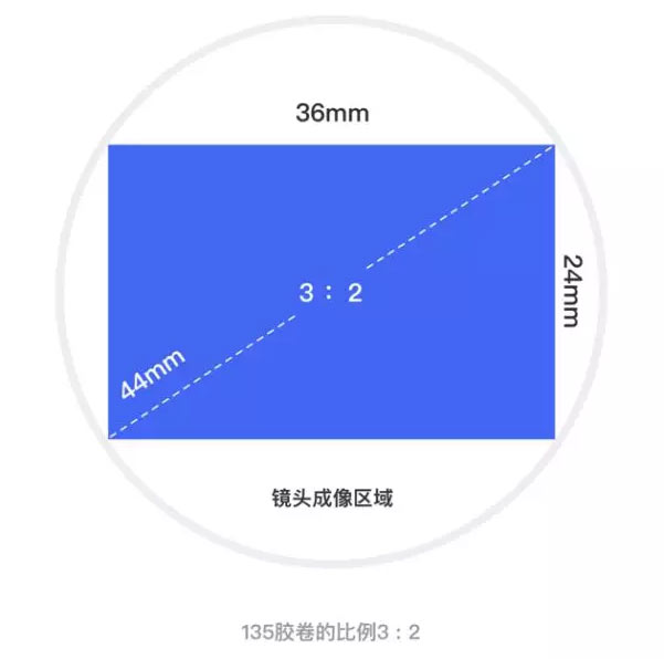 在早期徕卡镜头的成像圈大约为44mm,而胶卷的宽是24mm,因此如果在44mm的圆上截取一块宽为24mm的长方形,那么边长正好为36mm,也就是3比2的比例,同时由于徕卡几乎是行业内一家独大的公司,因此其他品牌相机也纷纷效仿这一比例。