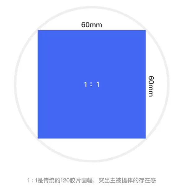 1 : 1是传统的120胶片画幅,也叫大画副,因为相机结构和其他一些原因,导致了胶片是方形的,一般为6×6厘米。利用此比例更容易将构图归整得简单,突出主被摄体的存在感。