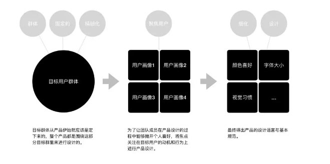 对于用户群体的了解,你能够通过这部分用户群体找到相关的用户画像。这一点很重要(因为从你入职为UI设计师的那天开始,你的设计是帮助公司服务于用户的,并不是为了表达你崇高的艺术涵养的)。通过用户画像,你能找到这部分人的主要特征,这将会有助于你选择设计中使用的颜色、字体大小。