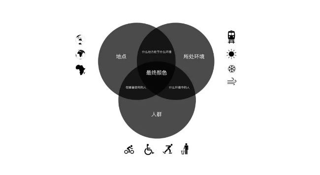 (2)使用场景=颜色使用是否符合用户使用产品时的场景。这个就比较好理解了,产品到底是晚上用的还是白天用的,到底是地铁上用的还是书房里用户。不同的使用场景在设计时也应该考虑在内。例如,晚上使用的产品颜色一定会偏暗一些、白天热闹场所使用的产品一定会是偏简洁、书房使用的产品一定是偏温和…