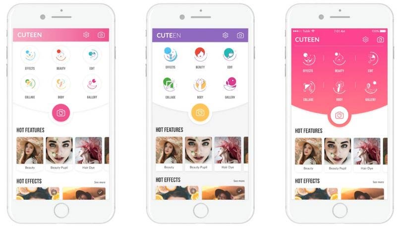 考虑到用户最大的受众是15~35岁之间的女性用户,设计师将会针对这些用户制作自拍和照片编辑 APP,目前这款 APP 暂时定名为 Cuteen,而 Slogan 则定为「遇见最美丽的你」。