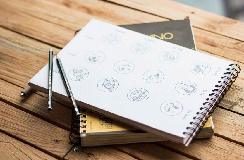 为了节省时间来构思并完成作品,设计师选择了手绘草图。设计师提供了三套不同风格的图标,并且为每个功能提供了各种各样的概念设计。